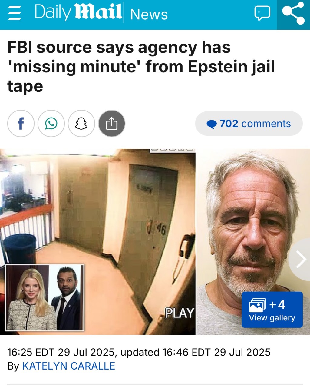 FBI source says agency has ‘missing minute’ from Epstein jail tape