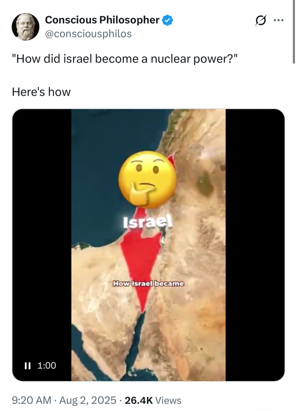 "How did israel become a nuclear power?"Here's how pic.twitter.com/c92ZW8DDys— Conscious Philosopher (@consciousphilos) August 2, 2025