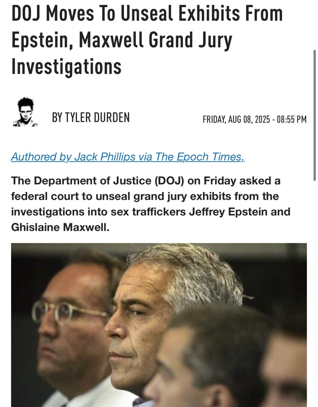 The Department of Justice (DOJ) on Friday asked a federal court to unseal grand jury exhibits from the investigations into sex traffickers Jeffrey Epstein and Ghislaine Maxwell.