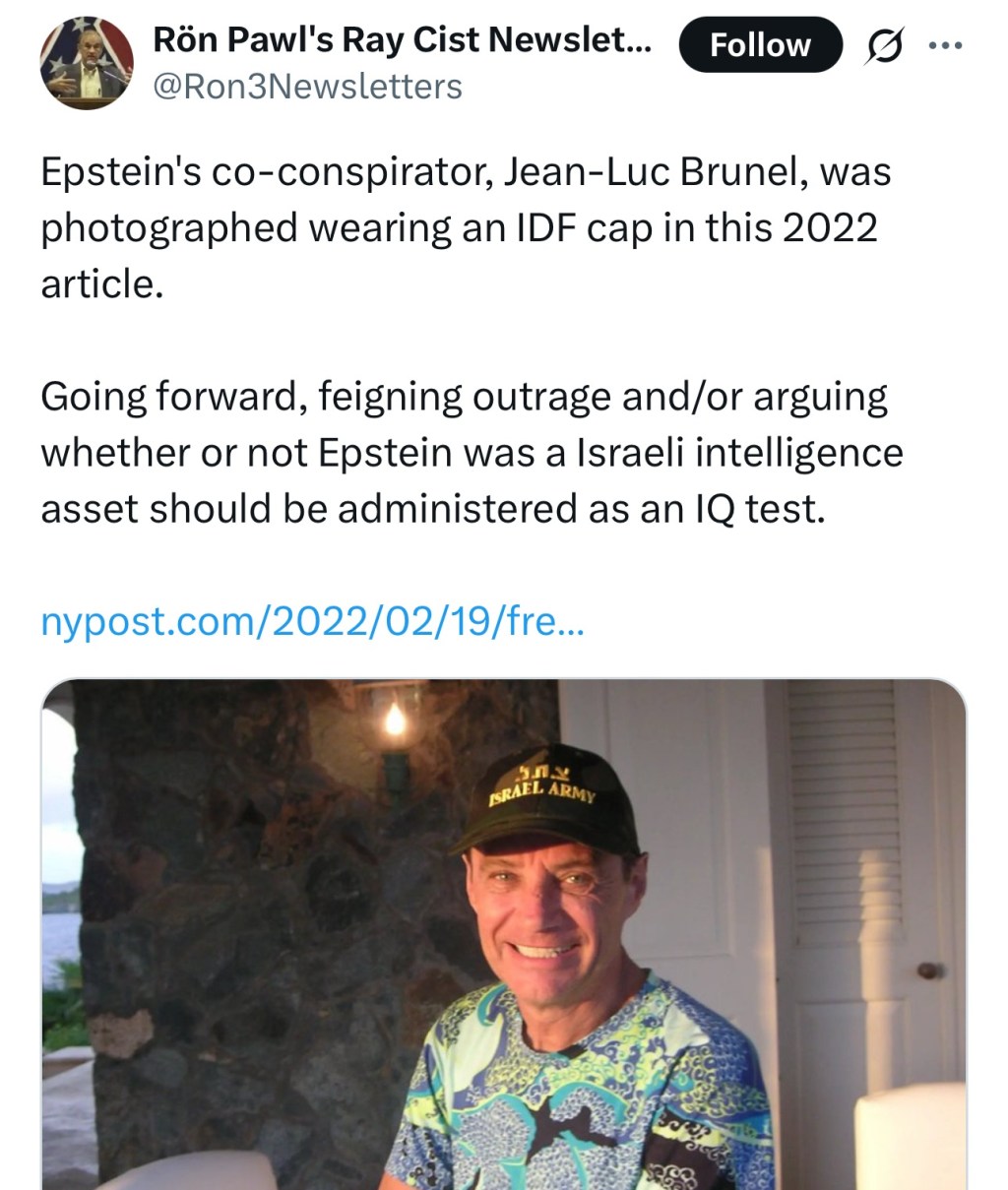Video cameras in cell where Epstein’s alleged model-agent pimp Jean-Luc Brunel was found dead reportedly not working at the time.