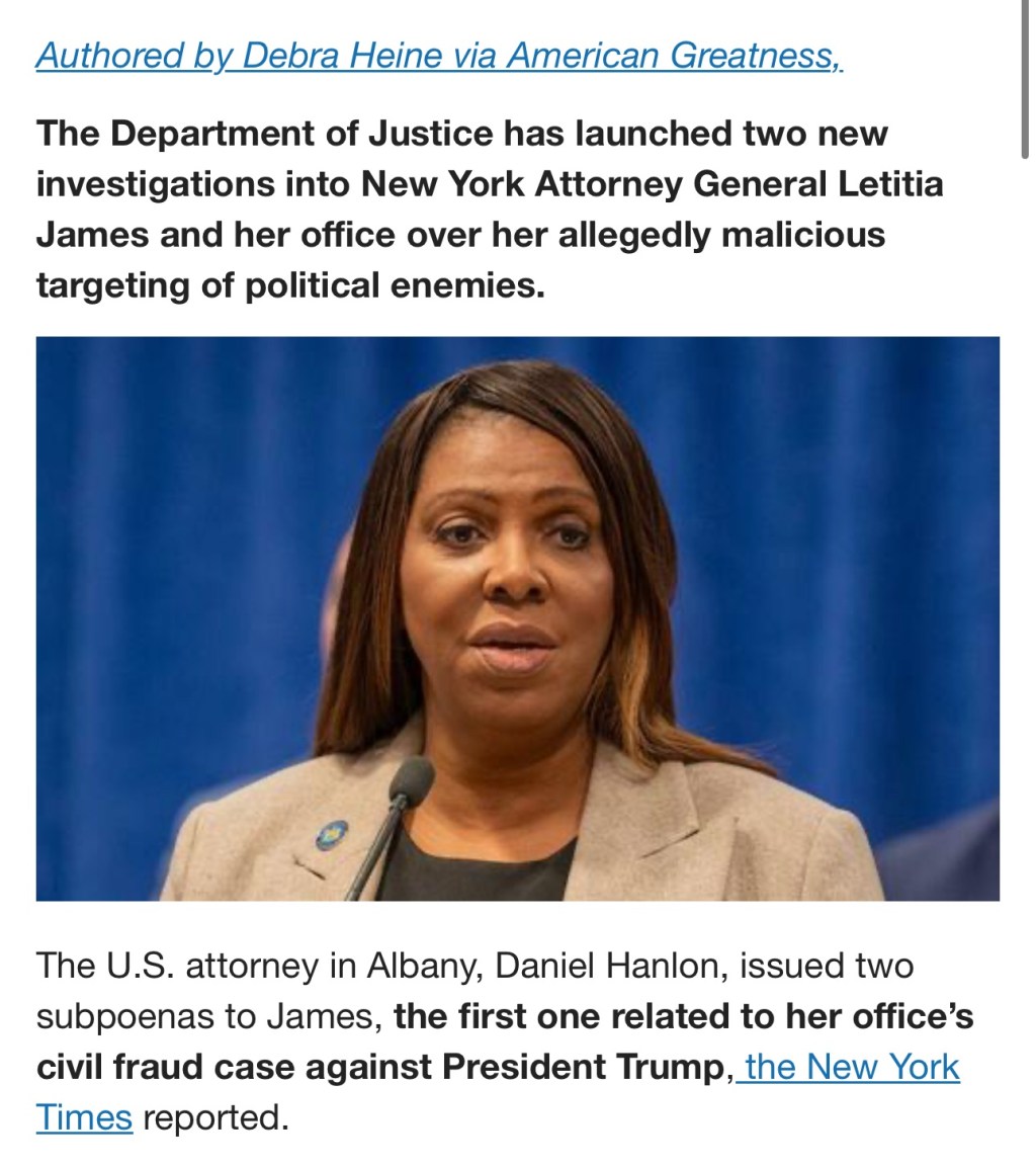 “The DOJ Is going after James because she took then former president Donald Trump to court ‘simply because she didn’t like him and campaigned on getting him,’” Fox reported. The Justice Department reportedly believes James violated Trump’s First Amendment rights dealing with free speech.