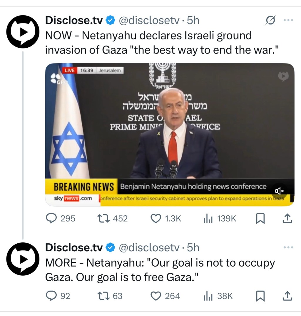 MORE – Netanyahu: "Our goal is not to occupy Gaza. Our goal is to free Gaza."
