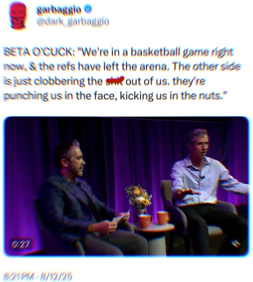 BETA O'CUCK: "We're in a basketball game right now, & the refs have left the arena. The other side is just clobbering the shit out of us. they're punching us in the face, kicking us in the nuts." pic.twitter.com/JhVItD3z5O