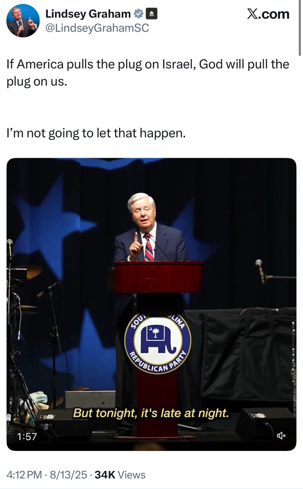 — Lindsey Graham (@LindseyGrahamSC) August 13, 2025