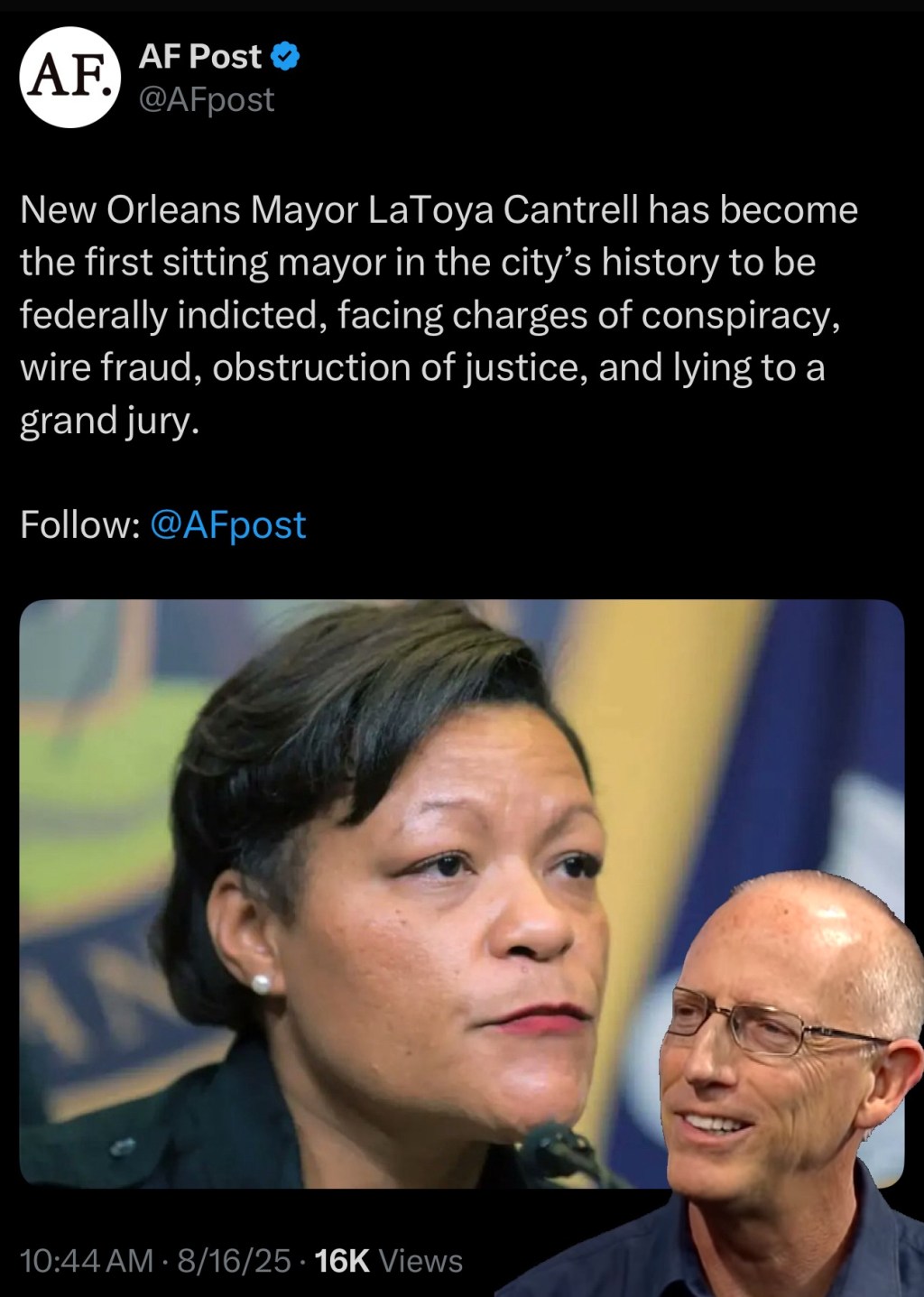 New Orleans Mayor LaToya Cantrell has been indicted by a grand jury Friday.