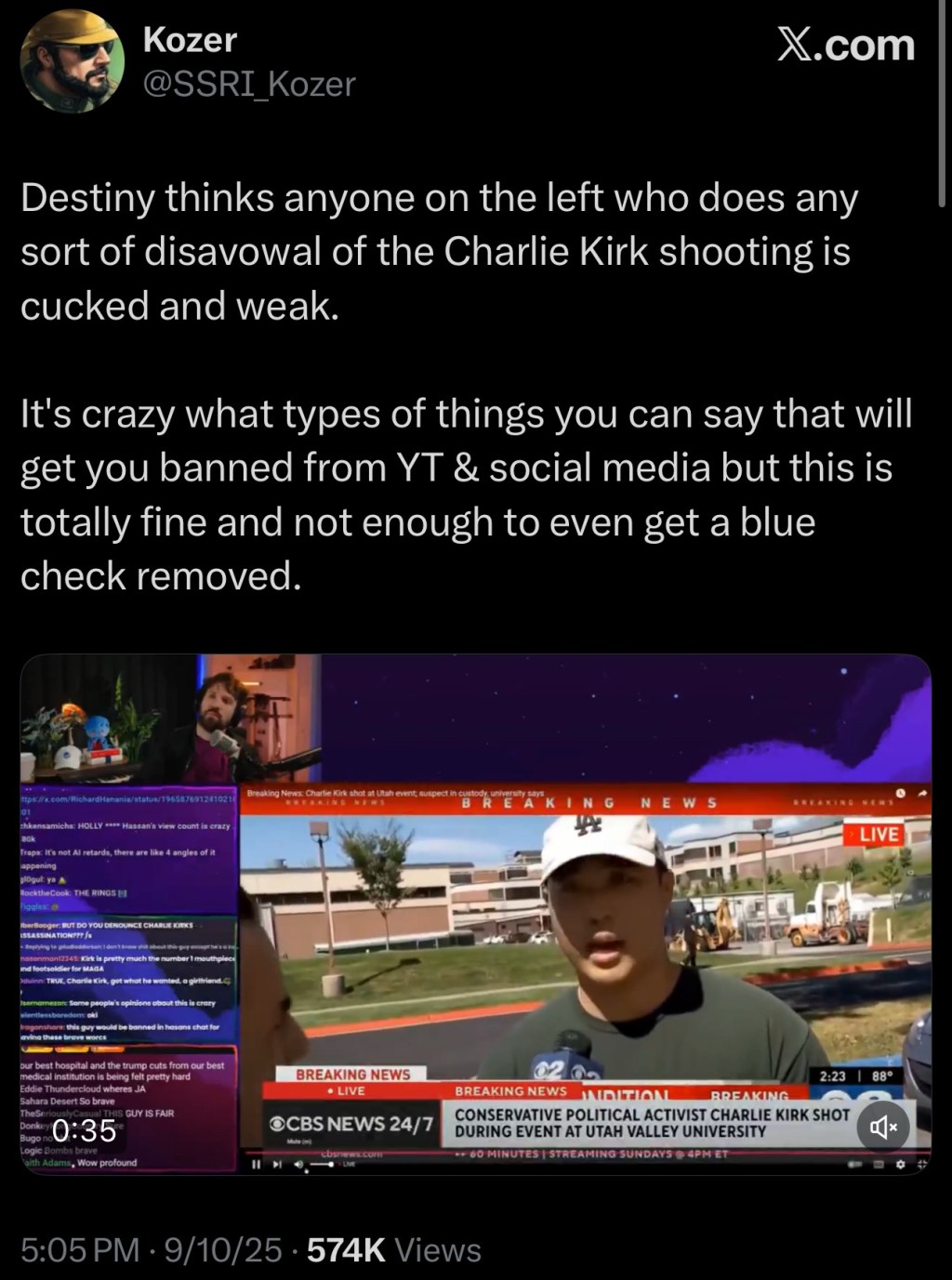 Destiny thinks anyone on the left who does any sort of disavowal of the Charlie Kirk shooting is cucked and weak.