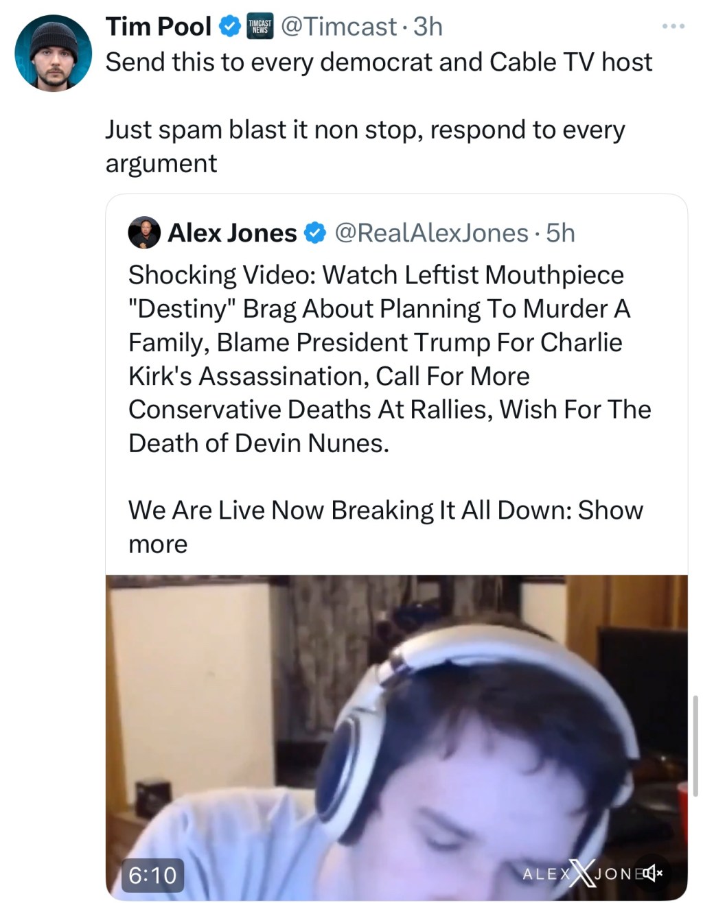 — Alex Jones (@RealAlexJones) September 17, 2025