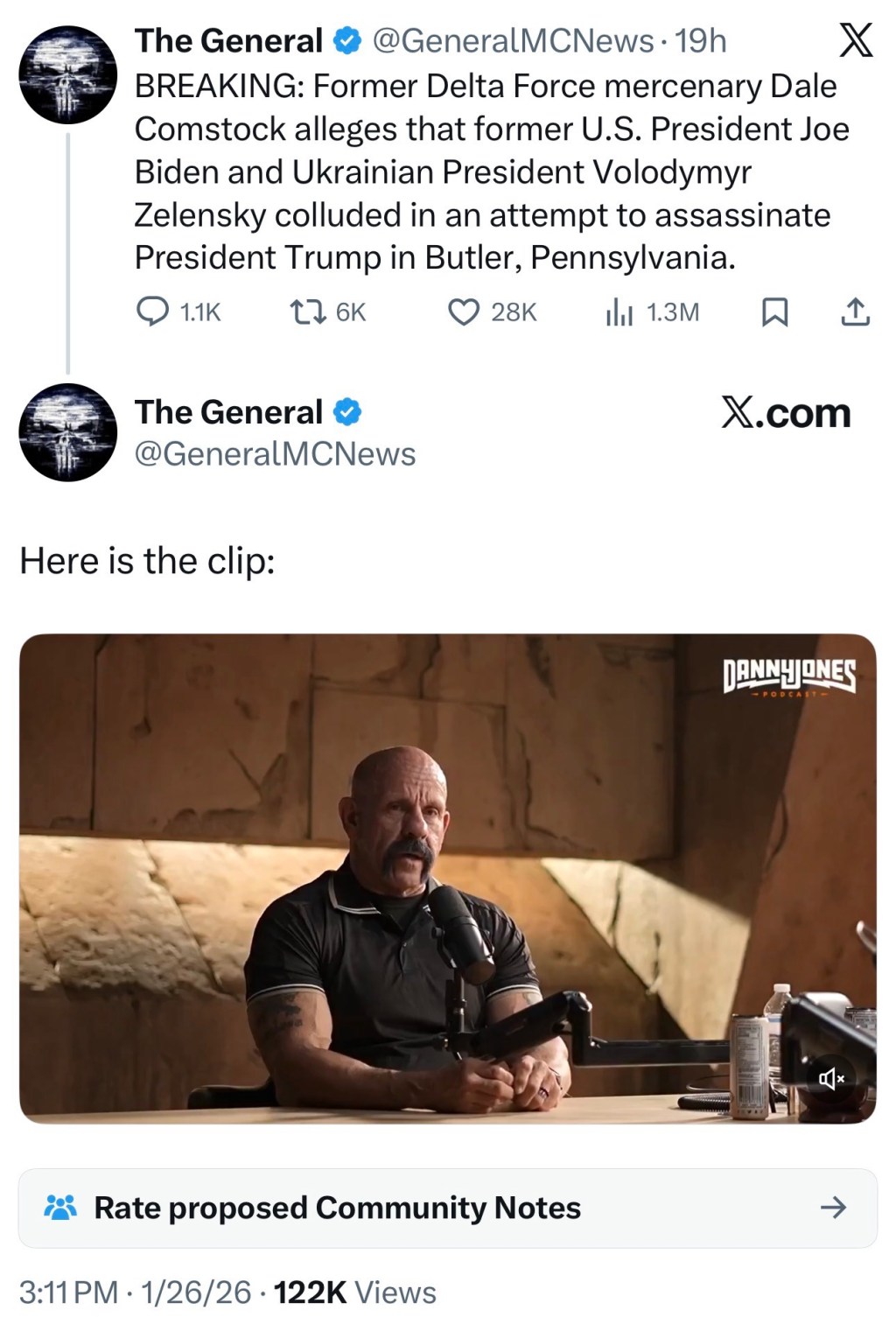 “The Butler Pennsylvania theory is that Biden told Zelensky that if Trump wins…that he was going to lose the funding. There was 2 shooters, one Ukrainian, one Patsy…”pic.twitter.com/bpiEv8TmM3