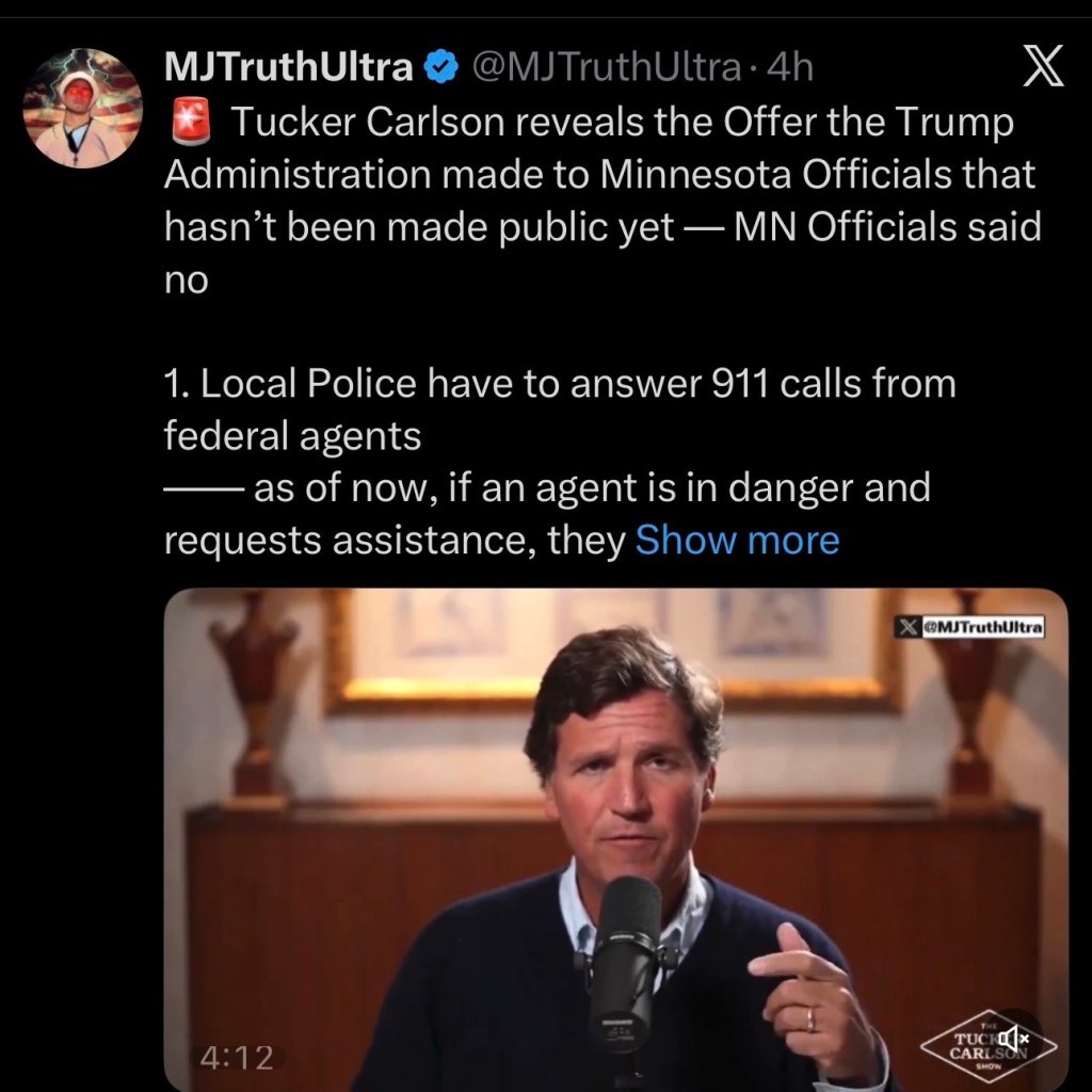 🚨 Tucker Carlson reveals the Offer the Trump Administration made to Minnesota Officials that hasn’t been made public yet — MN Officials said no