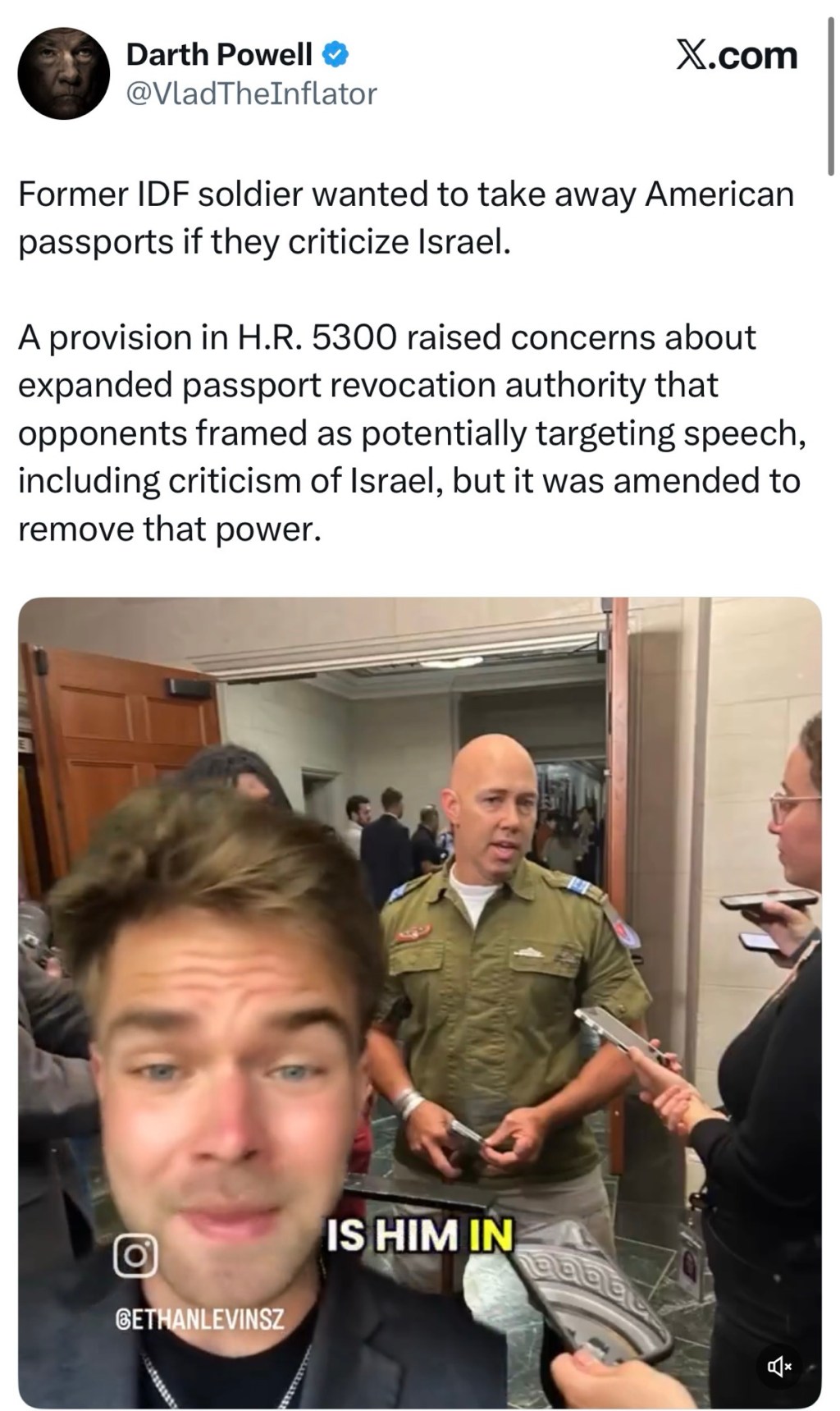 Former IDF soldier wanted to take away American passports if they criticize Israel.