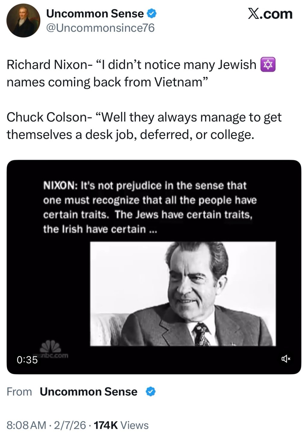 Richard Nixon- “I didn’t notice many Jewish ✡️ names coming back from Vietnam”