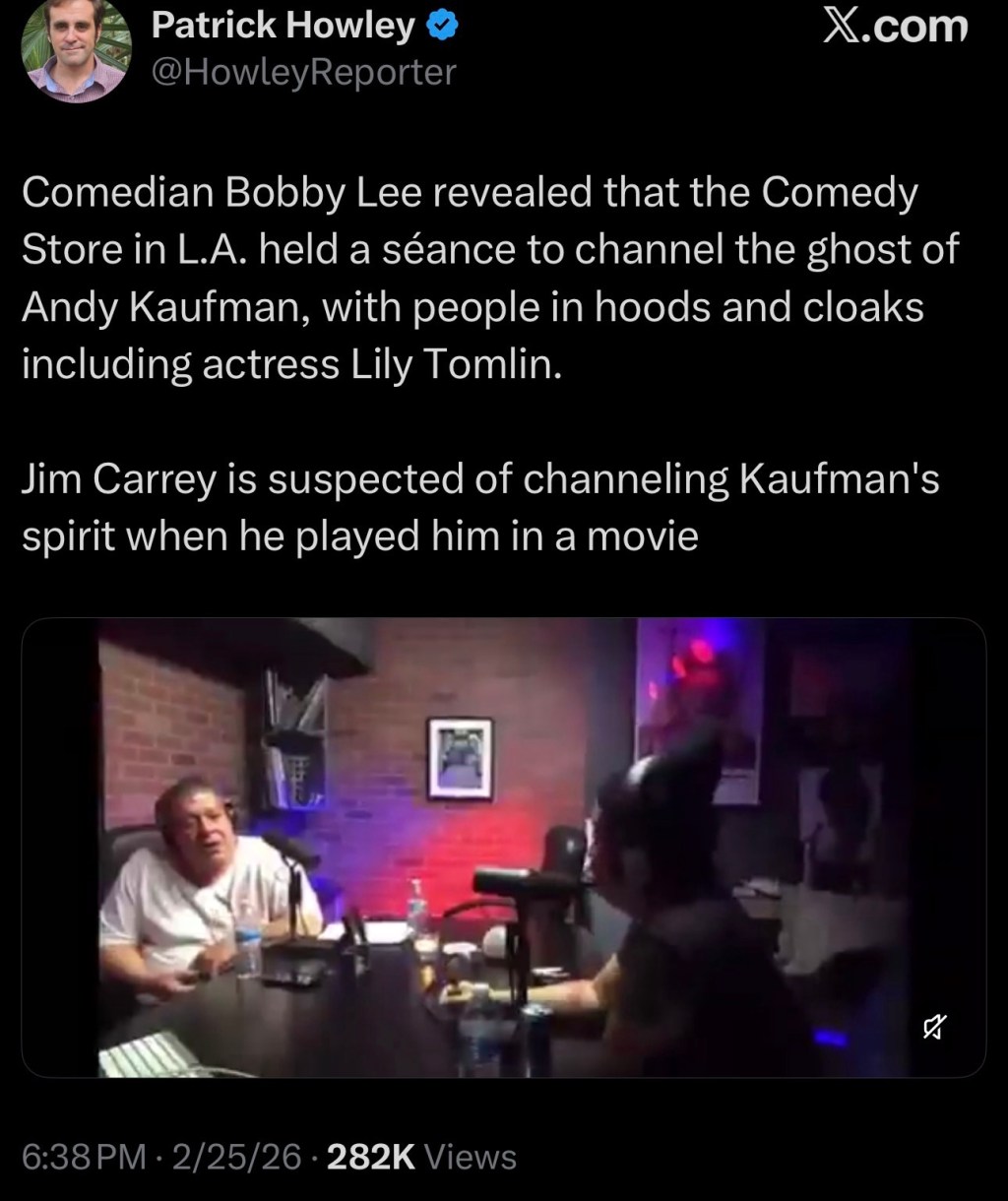 Jim Carrey is suspected of channeling Kaufman’s spirit when he played him in a movie