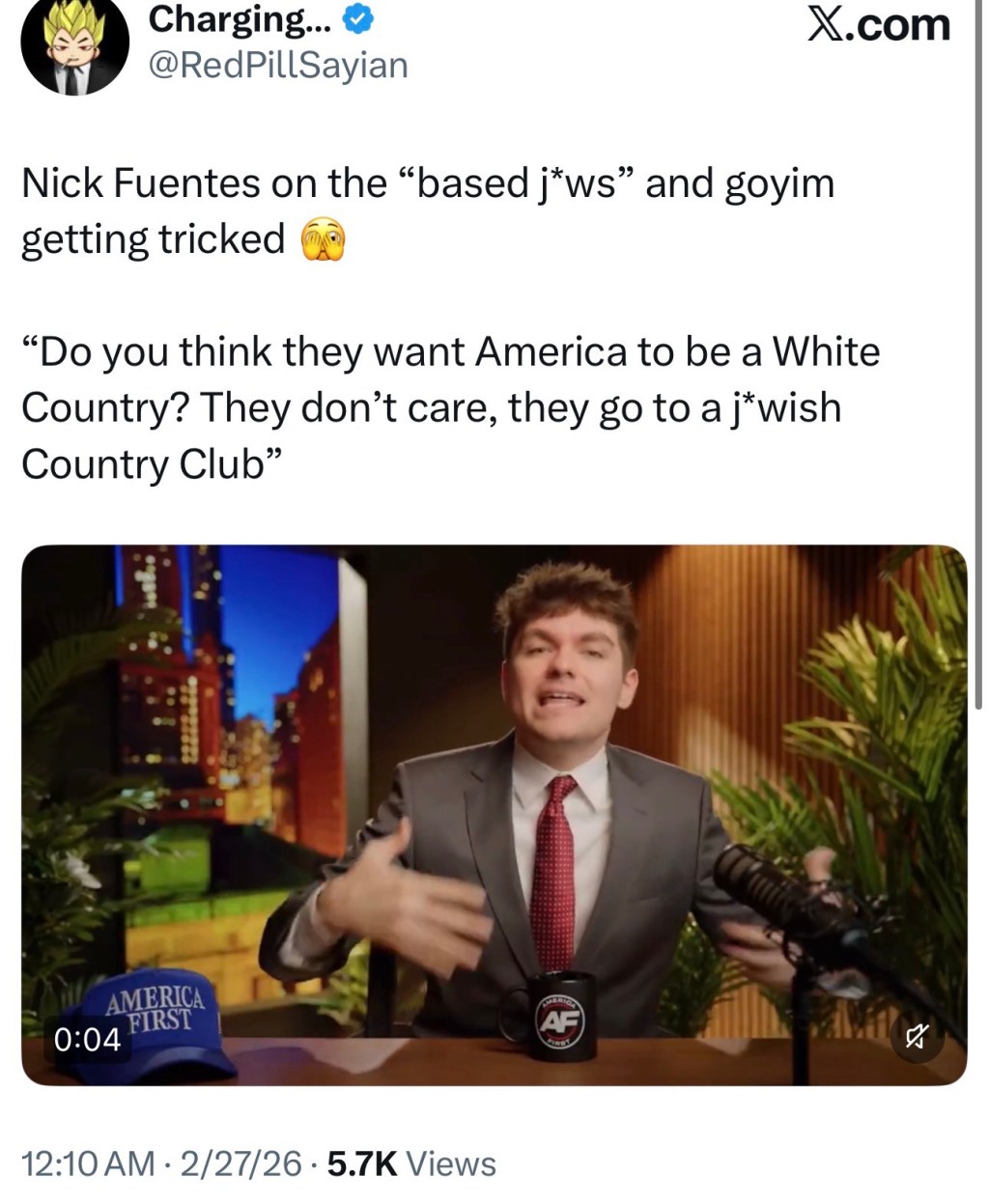 “Do you think they want America to be a White Country? They don’t care, they go to a j*wish Country Club”