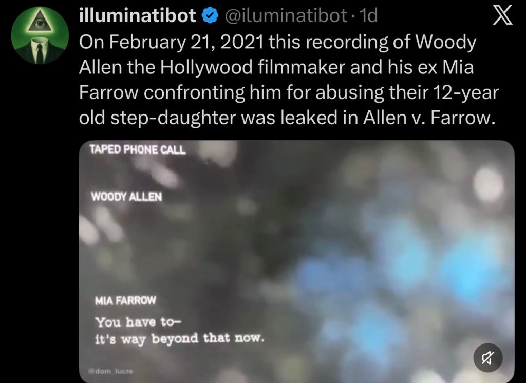 On February 21, 2021 this recording of Woody Allen the Hollywood filmmaker and his ex Mia Farrow confronting him for abusing their 12-year old step-daughter was leaked in Allen v. Farrow. pic.twitter.com/ehGiFsm4zW