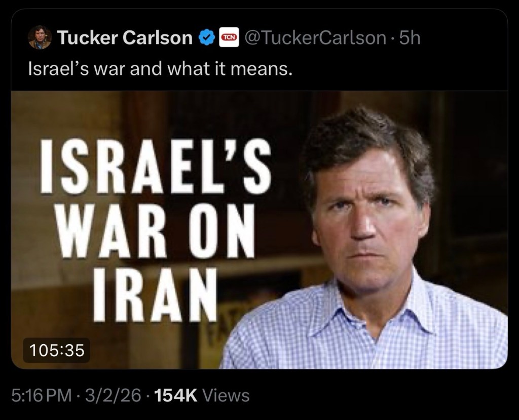 — Tucker Carlson (@TuckerCarlson) March 2, 2026