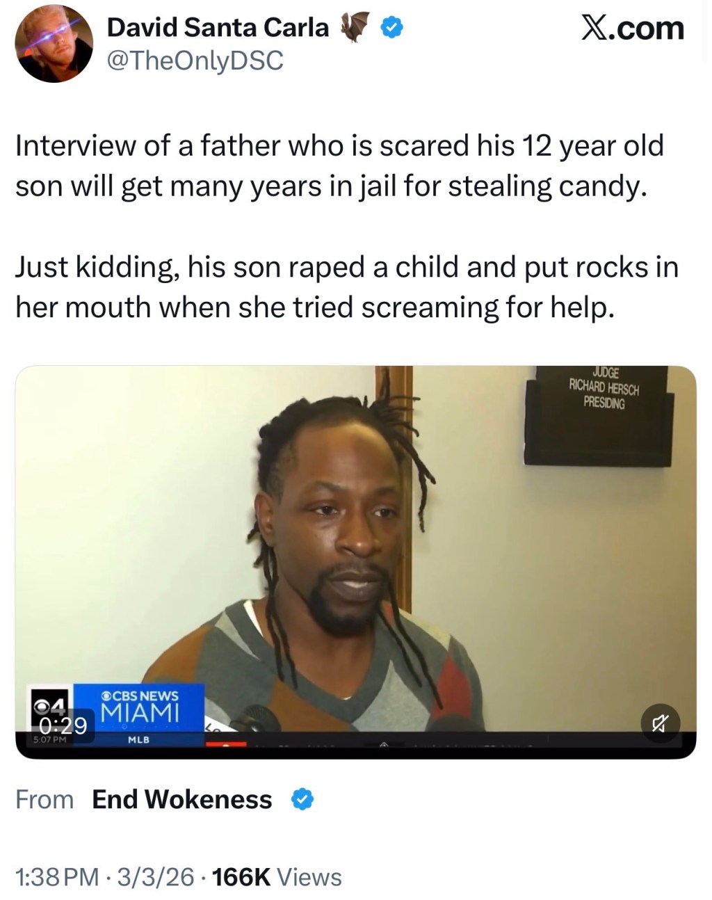 Just kidding, his son raped a child and put rocks in her mouth when she tried screaming for help.
