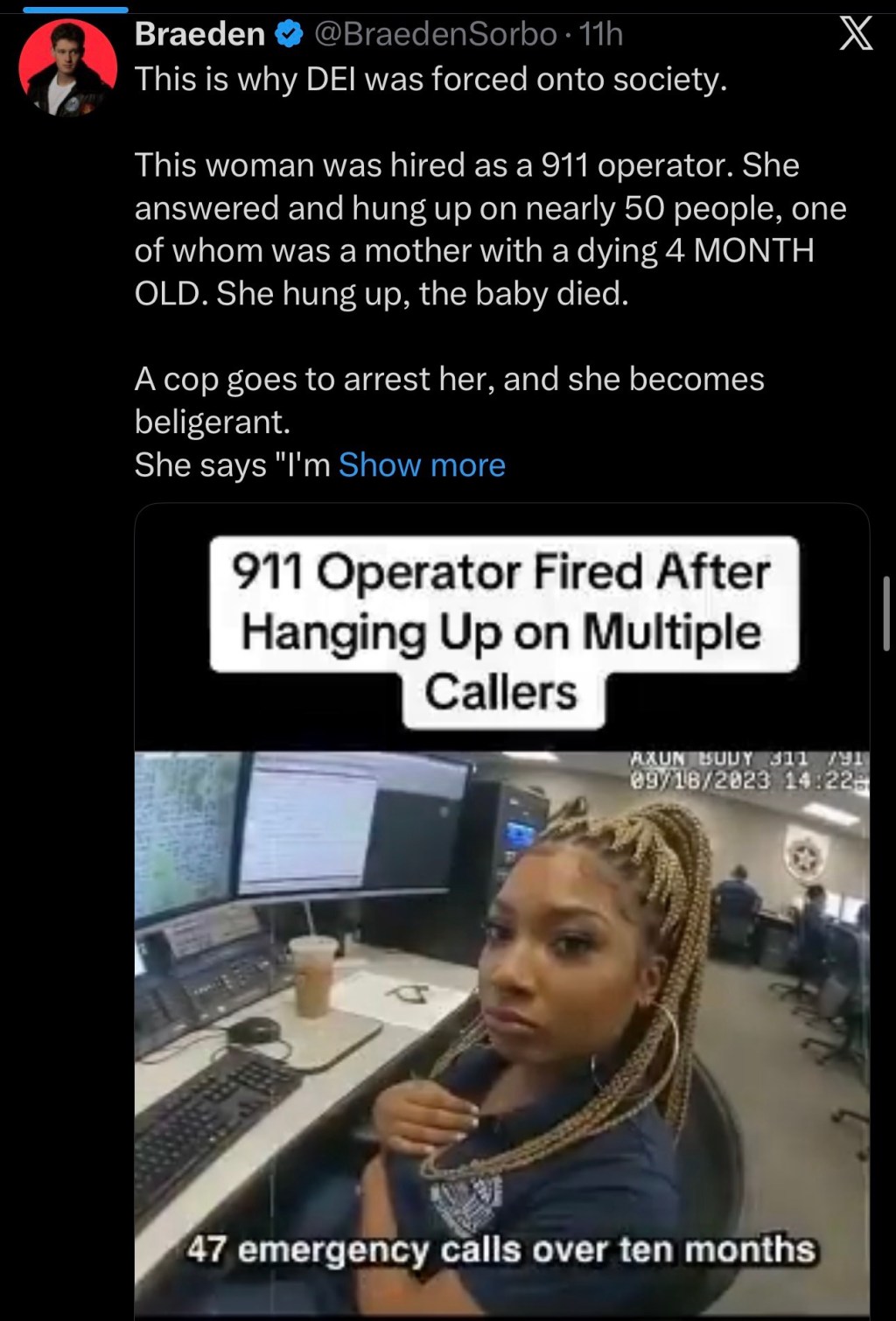 This woman was hired as a 911 operator. She answered and hung up on nearly 50 people, one of whom was a mother with a dying 4 MONTH OLD. She hung up, the baby died.