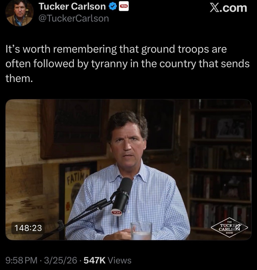 — Tucker Carlson (@TuckerCarlson) March 26, 2026
